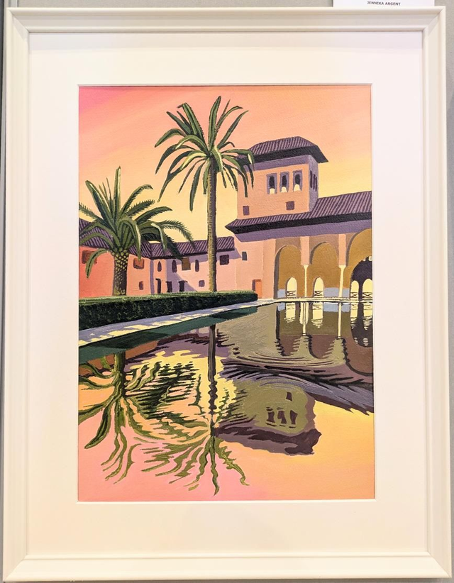 Original oil painting of sunset at the Generalife Gardens at the Alhambra, Granada, Spain. 12x16 inch oil on oil paper